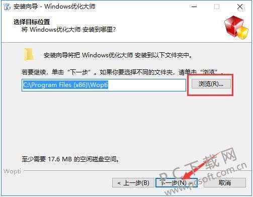 4、选择windows优化大师安装位置,您可以点击【下一步】,软件会自动安装。或者您可以点击【浏览】,在弹出的安装位置界面,您可以自行选择windows优化大师安装位置,选择完成后,点击【下一步】。