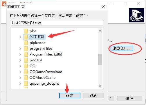 2、软件默认安装位置为“C:/Program Files (x86)/Feige”,小编建议点击“浏览”选择C盘以外的磁盘安装