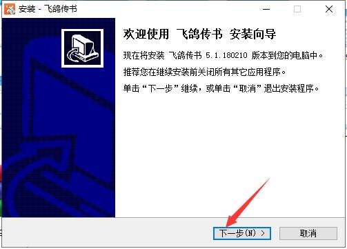 1、在PC下载网下载飞鸽传书软件包,解压缩后双击“Feige_for_windows.exe”程序进入欢迎安装界面,点击【下一步】继续