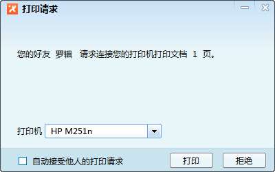 对方在收到您打印请求后,可以选择同意或拒绝打印,如果对方设置为自动接收打印请求,则无需经过同意,自动打印。