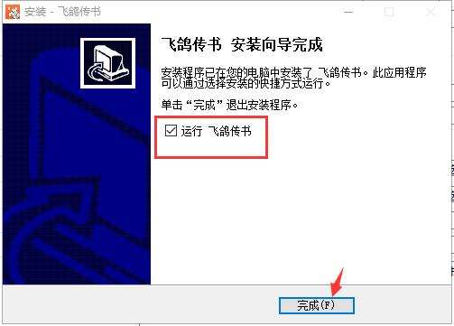 7、软件安装成功,根据用户自己需要选择是否运行飞鸽传书,点击【完成】退出安装向导