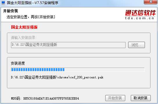 4、国金证券太阳至强版软件正在安装,我们耐心等待