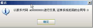 如果信息有误还可以取消 返回上图继续填写下单信息,如果正确,当确定之后会返回一个提示信息,内容有股东代码以及合同号,如果有其他情况则返回原因。