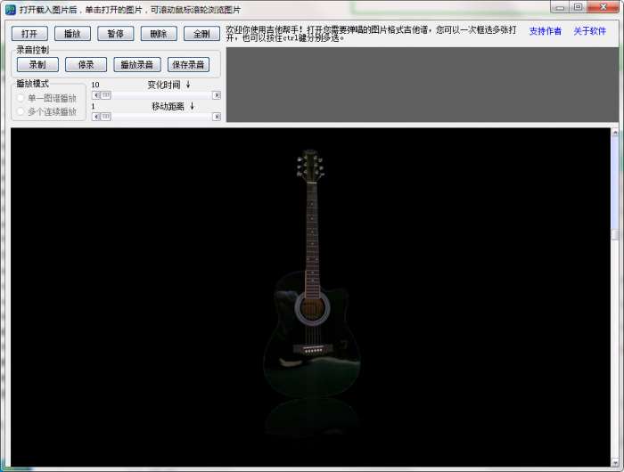 吉他帮手是一款免费的曲谱播放软件,可以根据需要的节奏在电脑上自动编辑和播放,支持多种格式的图片图谱,可以一次打开多个谱子,调整对应播放顺序,还可录制自己的音乐作品。不管你下载的吉他谱是什么图片格式它都能播放出来,吉他帮手支持多开曲谱拥有连播功能。