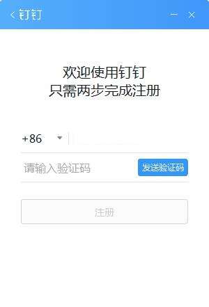 2、输入用户自己的手机号,然后点击“发送验证码”,之后手机会受到验证码,把验证码输入进去,点击“注册”,就注册成功了,用户可以用手机号登陆钉钉电脑版了。