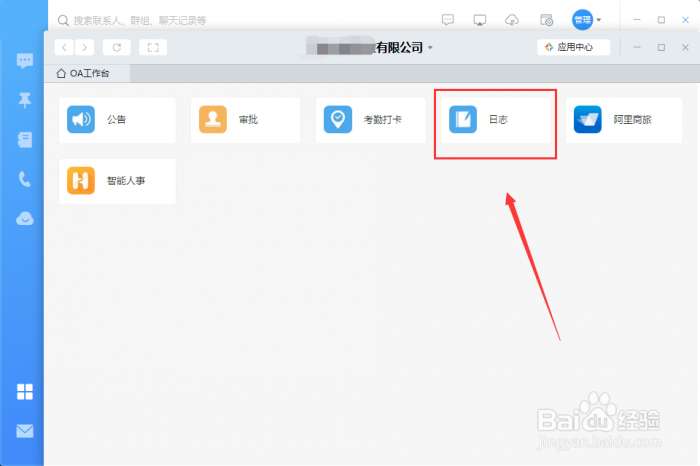 10、点击左侧栏倒数第二个选项,会出现关于工作中的审批、公共、考勤打卡等功能。