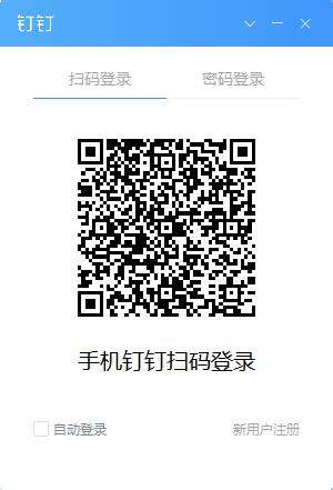 1、下载安装好钉钉电脑版之后,双击打开客户端会出现下图所示,有账号的用户可以“扫码登录”或者“密码登录”,如果没有账号,点击下方的“新用户注册”。
