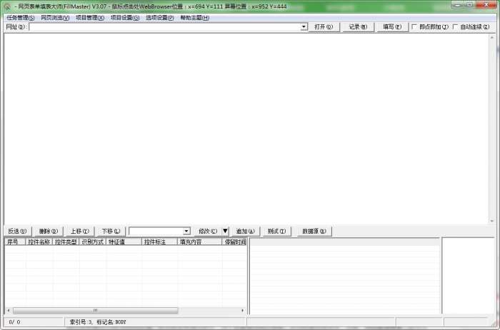 网页表单填写大师是一款专业实用的自动填表工具。工具适用于大多数网站的注册信息的填写、留言、评论、鼠标自动点击,以及网站管理员、编辑批量发布文章信息、群发邮件等业务,有了这款工具,你就可以解放双手,让电脑进行自动操作了。
