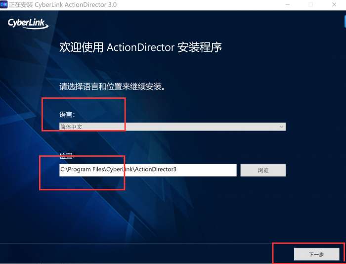 3.双击打开,进入威力酷剪软件界面选择安装语言和安装位置,点击下一步