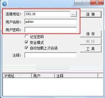 2、打开运行后,看到如下图,在这里输入连接地址,账号和密码再点击连接。