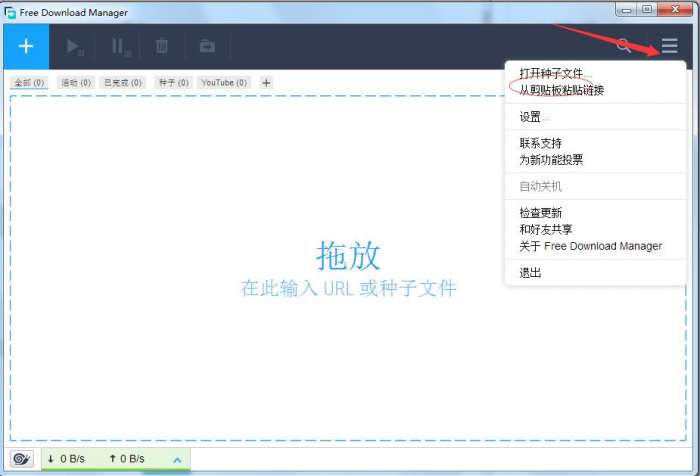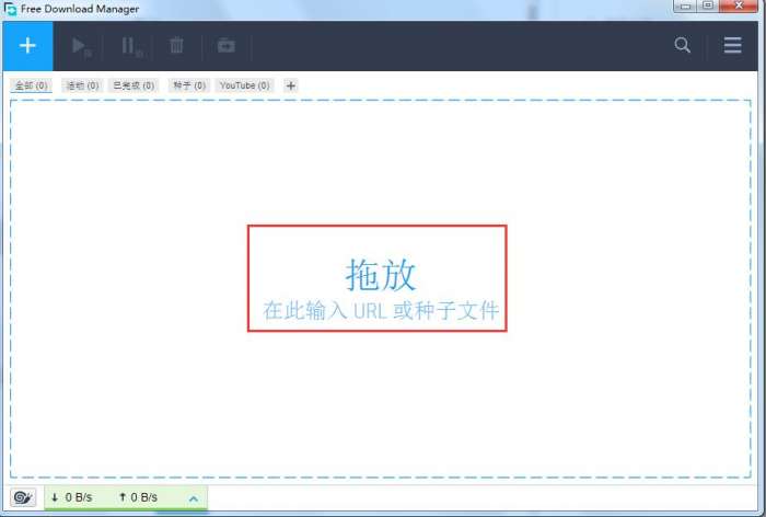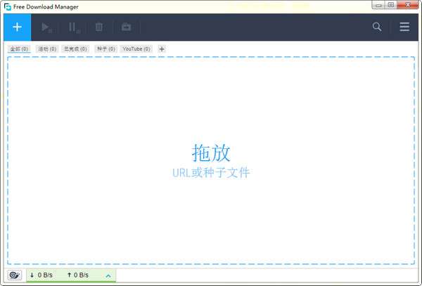 2、在界面中可以看到,可以在此输入URL或者种子文件直接拖到界面中,然后点击下载。