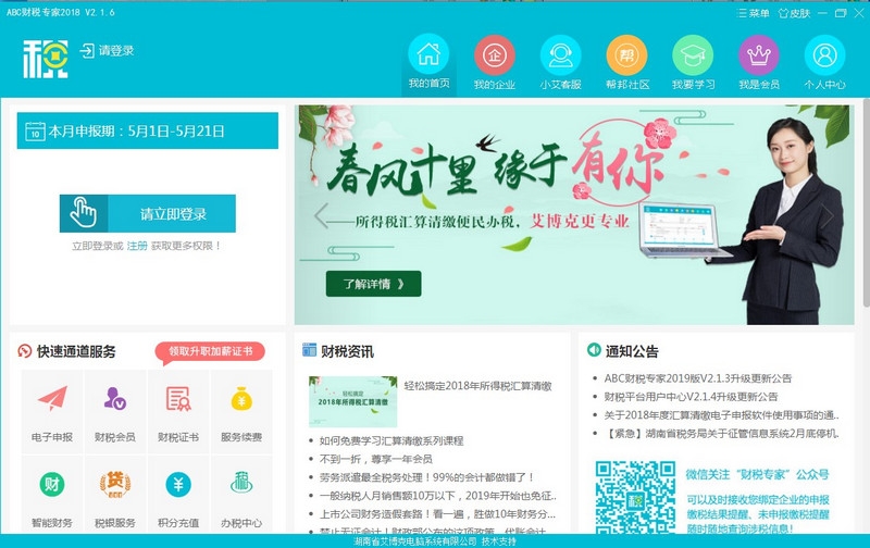 ABC财税专家软件是艾博克公司精心打造的一款服务于财税人员和纳税企业的综合财税服务云平台软件,软件包括:湖南税务电子申报、涉税业务办理、财务记账、办税导航等多种功能应用,同时也是及时了解财税政策的好帮手,是财会人员学习、交流财税专业知识和分享财税经验的互动社区,我们将致力于提供更优质、更专业化的企业服务,为创建和谐共赢的纳税环境而努力!