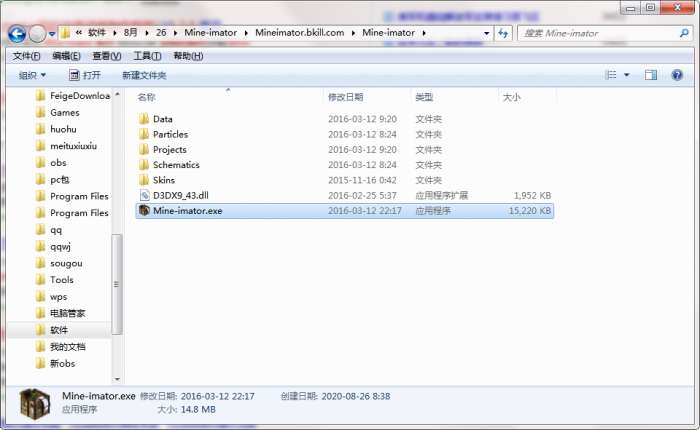 2.解压Mine-Imator软件,运行“EXE.文件”
