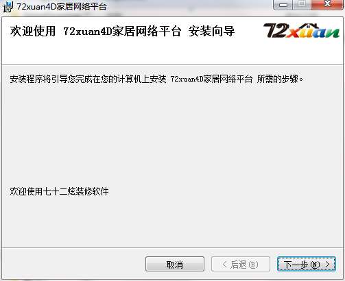 3.双击打开,进入72xuan装修设计软件界面,点击下一步