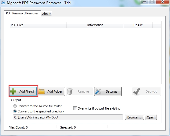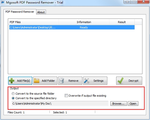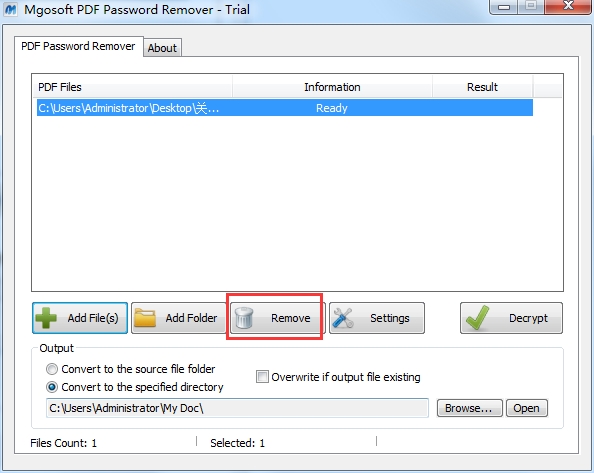 仅当您具有 PDF 文件的用户/打开密码时,才从 PDF 文件中删除用户/打开密码。