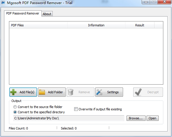 Mgosoft pdf Password Remover官方版是一款很强劲的pdf密码移除软件。Mgosoft PDF Password Remover最新版拥有便捷的界面,可以用于对pdf文件进行加密,还支持对pdf文档进行编辑、打印、复制、更改、添加备注等操作,Mgosoft PDF Password Remover对办公人员来说是一款极好的辅助工具。