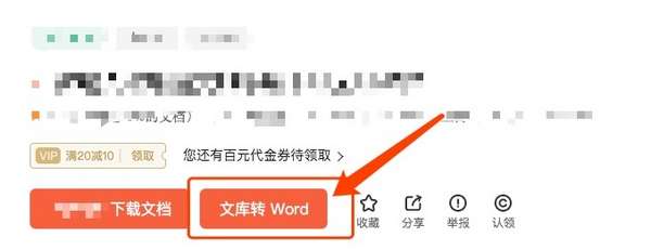 在下载按钮中找到「文库转 Word 」按钮 (如最后图所示);