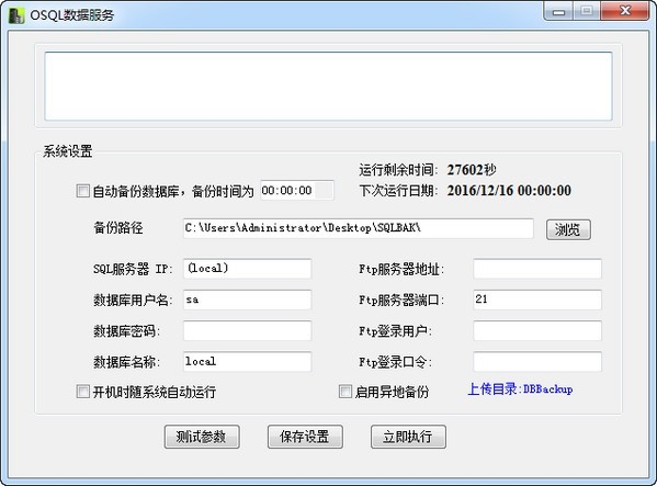 OSQL数据服务绿色版是一款界面美观大方、安全稳定的数据库备份软件,OSQL数据服务最新版操作简单,无需手动设定任务,解决备份包的异地存储,批量备份的任务,从而大大简化数据管理员繁琐的数据维护任务。OSQL数据服务可将数据完整的备份到本地磁盘或者U盘,也可以备份到异地ftp服务器,IP支持域名,备份路径支持网络路径。