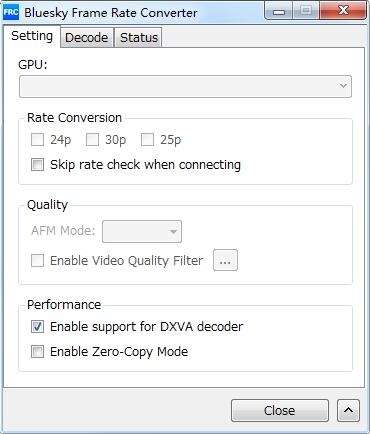 3、重启进入系统后通过桌面快捷方式再次进入该插件,将AFM Mode设置为Mode 2,勾选Rate Conversion中的24p和30p,最底部的Performance【性能选项】,两项都打勾。