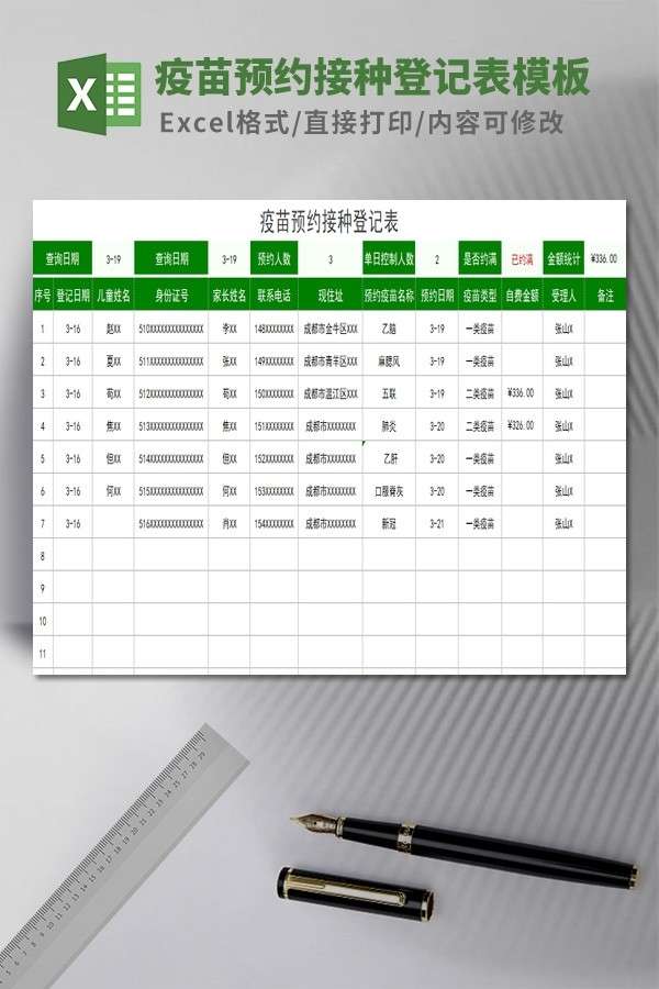 疫苗预约接种登记表模板,疫苗预约接种登记表模板是填写疫苗预约接种登记信息的表格模板。源文件为Excel格式模板,您可以直接下载源文件,以便修改内容,您可以免费下载。