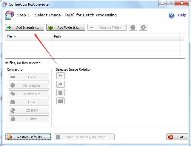 1、打开PixConverter软件,这里是软件的图片添加界面,点击add添加图片