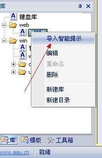 5、启用库文件智能提示功能:右键点库,在弹出菜单中点击“导入智能提示”。