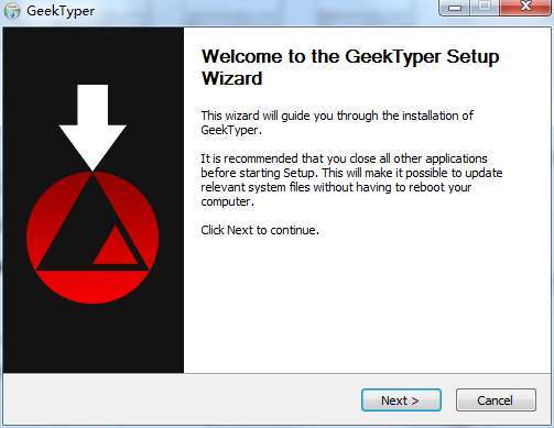 1、在本站下载geektyper(模拟黑客软件)安装包,双击打开,点击“next”。