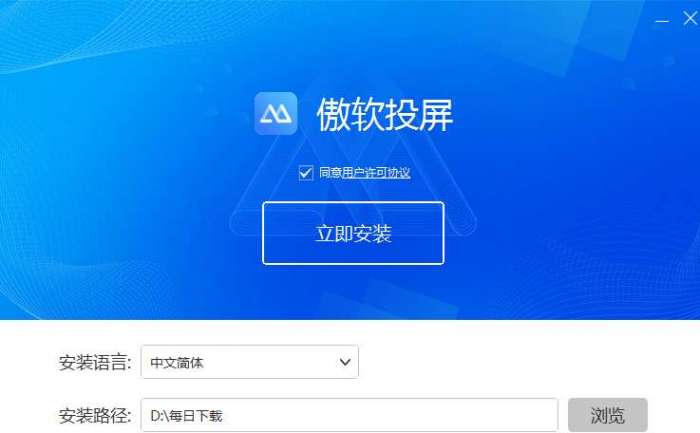 1、将傲软投屏下载下来,并解压到当前文件夹中,点击其中的apowermirror-setup-pin.exe应用程序,进入安装向导界面,点击浏览,选择软件安装位置界面,小编建议用户们安装在D盘中,选择好安装位置点击安装。