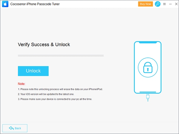 问:解锁iPhone后,Cocosenor iPhone Passcode Tuner是否清除所有数据?