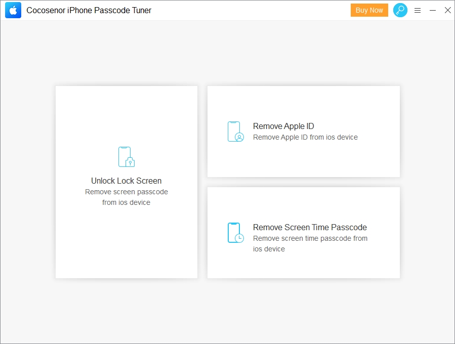 答:用Cocosenor iPhone Passcode Tuner,你可以解锁iPhone锁定屏幕;删除现有的苹果ID;删除屏幕时间密码时,你不记得密码。