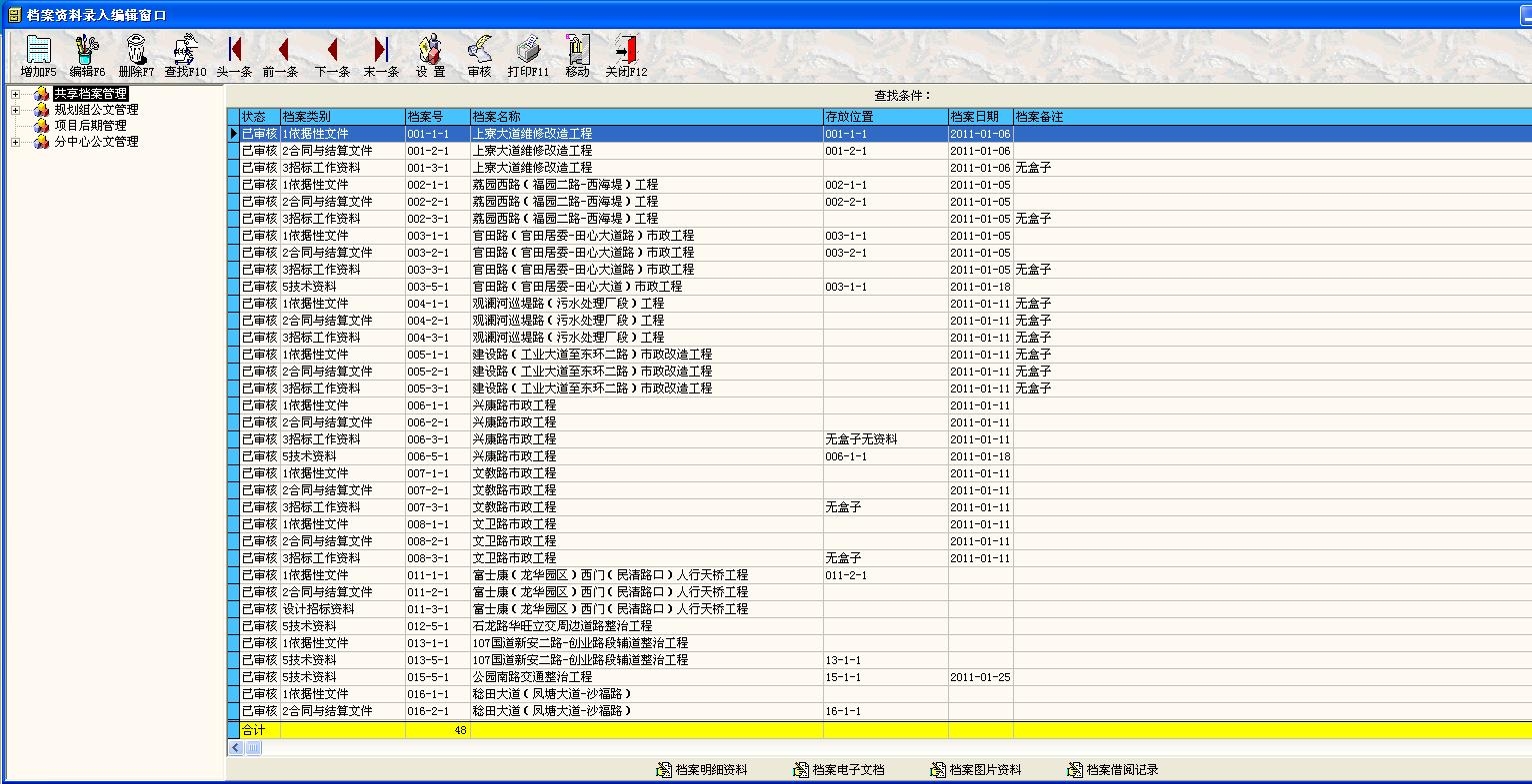 2、当我们的档案数量达到一定的数量后,挡案的管理就是一个比较麻烦的事,我门需要及时的找到所需的档案,需要很容易的了解档案的一些基本数据。