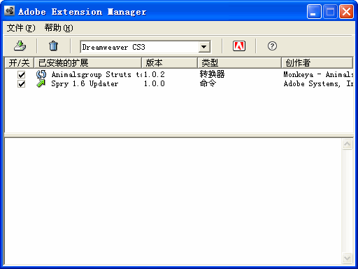 相信经常使用Dreamweaver的朋友一定非常熟悉这个软件,是随着Dreamweaver及相关的软件一起安装的Dreamweaver中所使用的插件及行为等,都是通过它安装的!!!