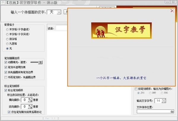 汉画汉字教学软件最新版是一款使用相当简单、功能极为强大的汉字笔画教学软件。汉画汉字教学软件官方版可广泛应用于中小学生的汉字学习、对外汉字教学、资料编撰、教材、试卷印刷等诸多领域。汉画汉字教学软件拥有非常细致和详尽的功能让用户可以方便有效率而又立体的学习汉字,激发学习汉字的兴趣。
