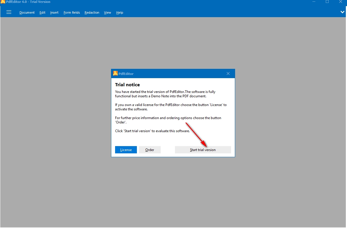 进入软件后出现这个界面,选择试用版,需要的可以选择购买完整版