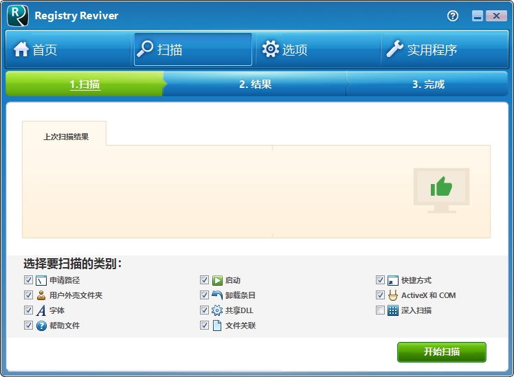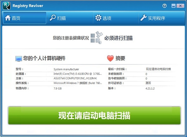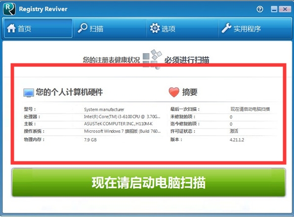 1、运行ReviverSoft Registry Reviver,进入如下所示的界面。