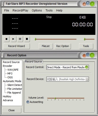 如果您使用的是FairStars MP3记录器的注册版本,那么只有当空闲的硬盘空间足够时,它才会允许您记录任意长的时间。如果您使用的是试用/评估版本,它有2分钟的记录时间限制,在这种情况下,您需要从我们这里购买注册码来注册以取消限制。