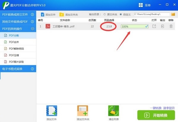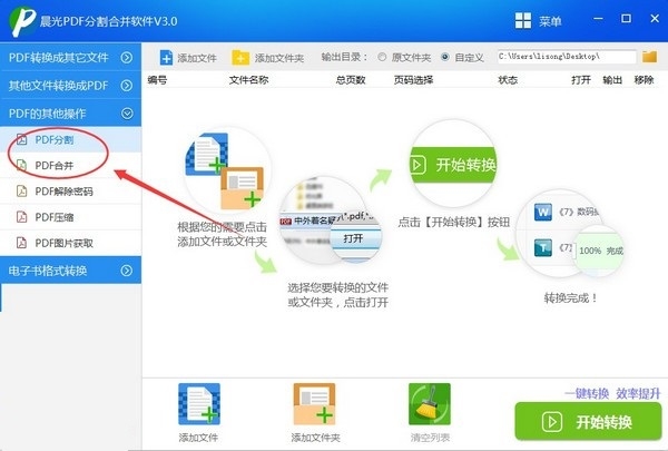 1.晨光PDF分割合并软件最新版支持自定义转换页面范围。