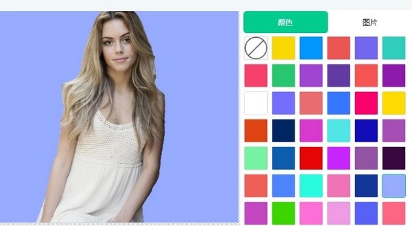 傲软抠图提供两种背景选择,一种是“颜色”库,你可以点击“颜色”库内任意一种纯色背景,左侧图片根据你的选择随时切换背景颜色,直到你满意。
