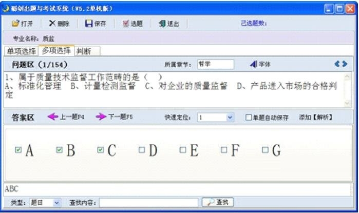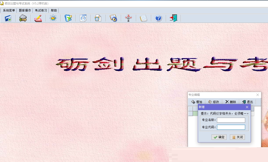 1.专业编辑与选择。专业的追加、修改、删除和选择,是初次使用时的最先操作步骤,也是进行题库追加、随机出题和题库编辑等操作的前提条件。
