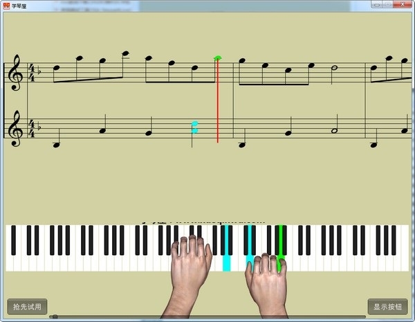 跟弹模式是一个非常重要的功能,用midi线将电脑与电钢琴连接后,可以打开此功能,提供左右手开关,可以选择哪只手进行跟弹,此模式中,只有用户弹对了才能通过,否则处于等待中。