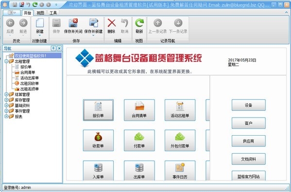 蓝格舞台设备租赁管理软件软件特色