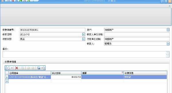 登陆软件,单击“结算管理”-“收费单”,用户会浏览到所有的收费单,双击某个收费单,就会弹出此收费单的详细信息,如下图: