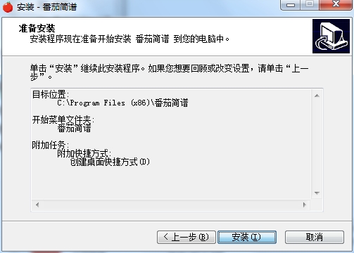 3、选择目标位置,默认位置“C:Program Files (x86)番茄简谱”,建议安装D盘,点击下一步;