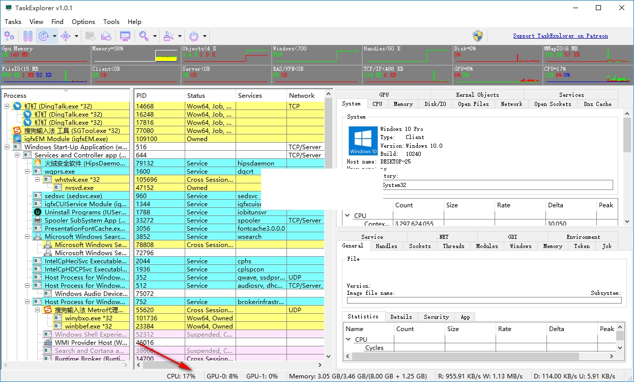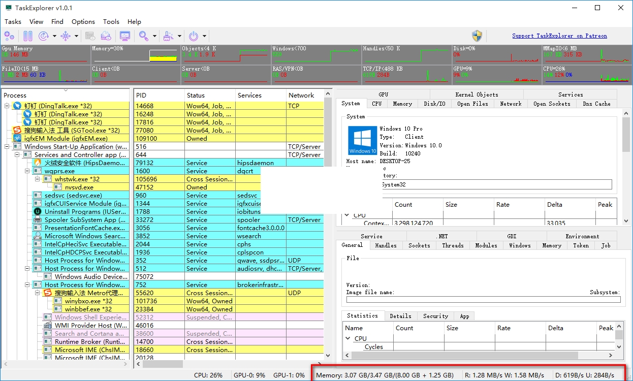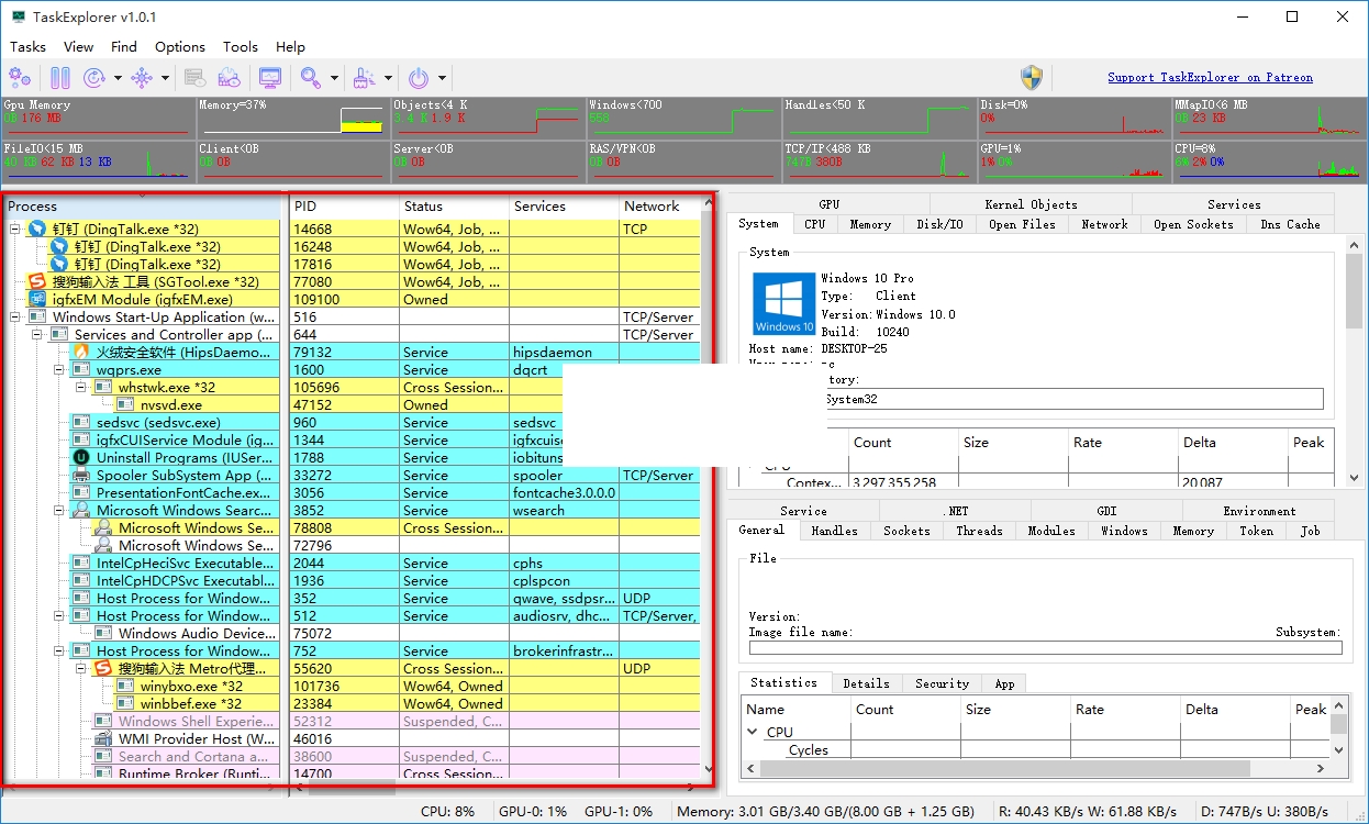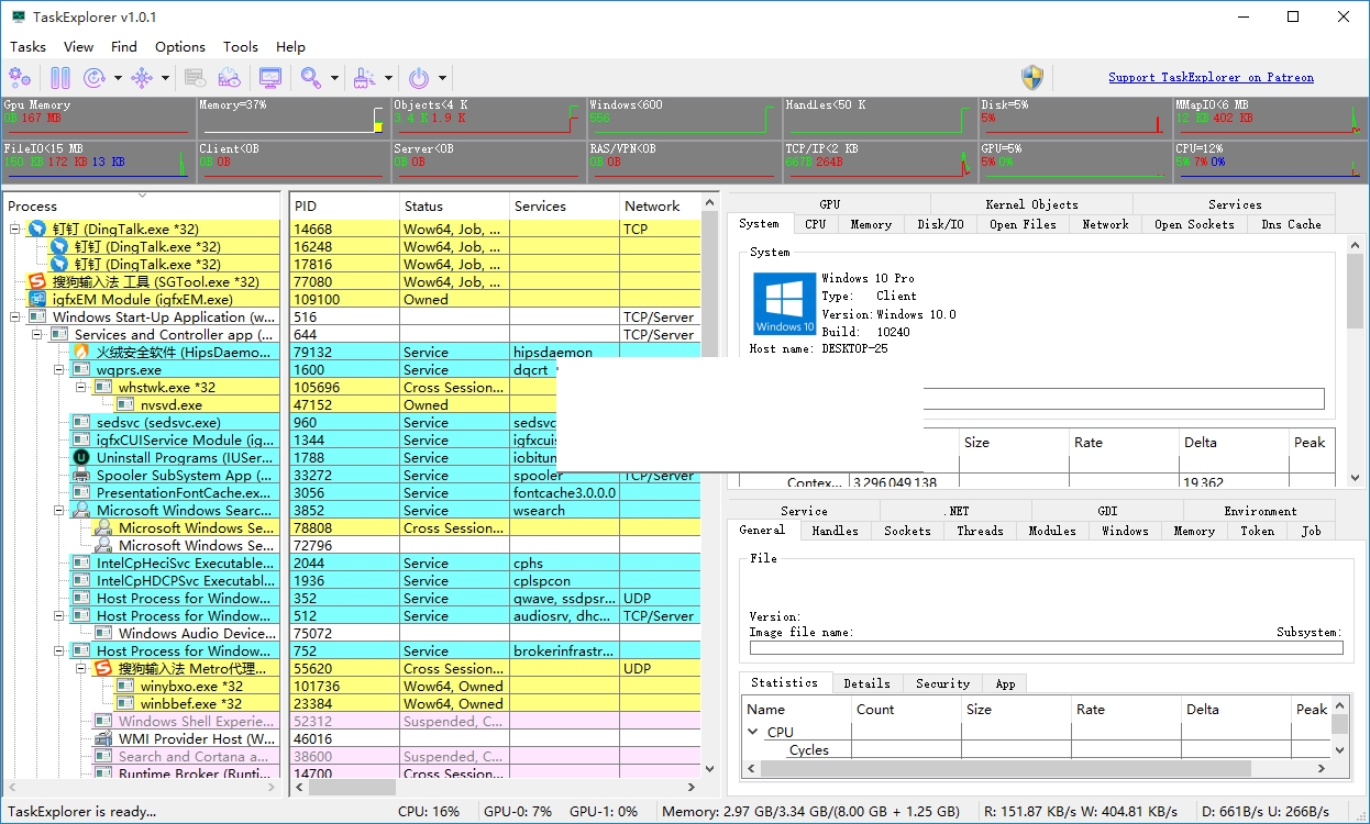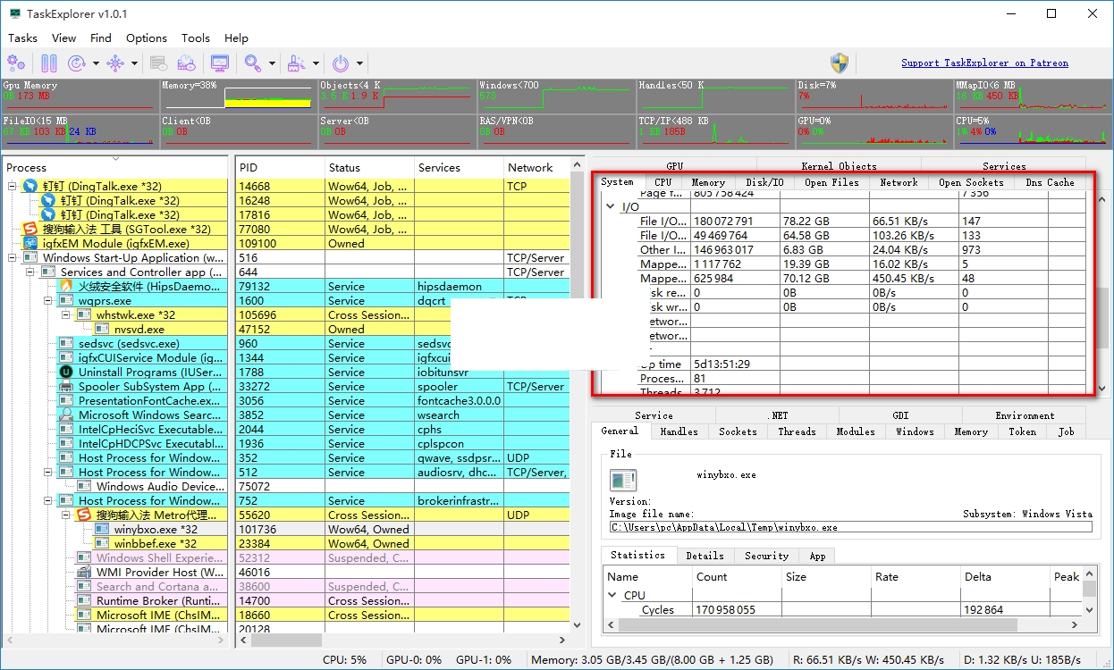 TaskExplorer官方版是一款十分出色的高级任务管理器,TaskExplorer官方版界面美观,使用流畅,支持查看计算机软硬件信息,包括CPU、硬盘使用量、网络上行下行速度、并发率等信息。不仅如此,TaskExplorer最新版还支持对硬盘的使用量进行实时更新等操作。