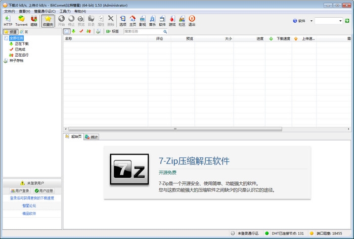 BitComet(比特彗星)是一款为大众熟知使用的BT下载软件,其稳定的下载速度,对种子寿命的延长,先进的P2P技术,让下载成为一件快乐的事。支持多任务下载,文件有选择的下载;磁盘缓存,减小对硬盘的损伤;只需一个监听端口,方便手工防火墙和NAT/Router配置;在WindowsXP下能自动配置支持Upnp的NAT和XP防火墙,续传做种免扫描,速度限制等多项实用功能,以及自然方便的使用界面。