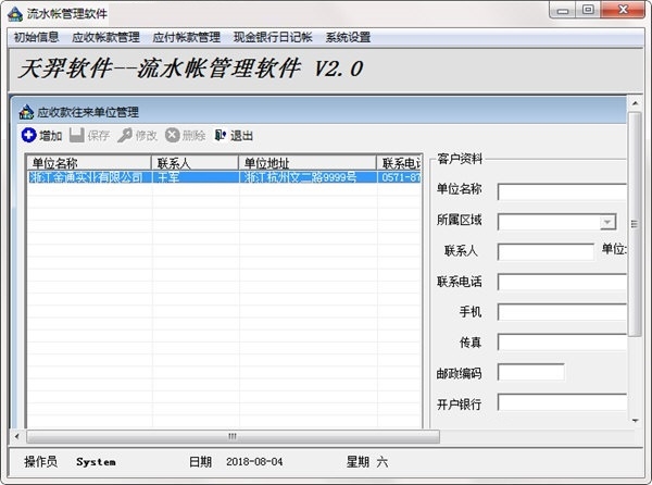 应收款往来单位管理: 因为一个企业必然有很多应收款单位,此模块功能就是可以增加各应收款单位,增加后,可在应收款其它模块功能中选择使用。