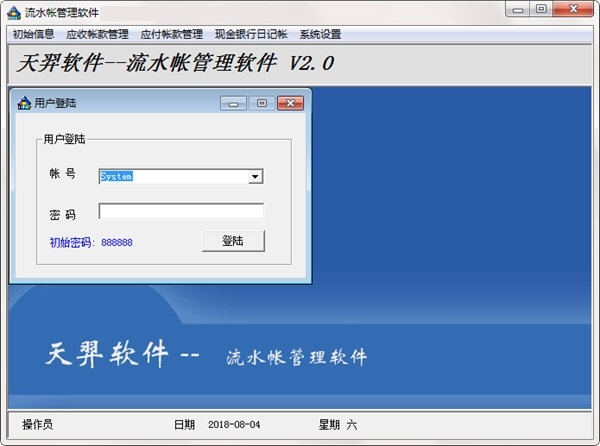 天羿流水帐管理软件正式版是款适用范围广泛且专业性强大的中小型企业 财务记账管理软件,天羿流水帐管理软件正式版拥有丰富的功能,为用户提供了丰富的功能,其软件包含应收、应付、现金银行日记帐的处理。天羿流水帐管理软件拥有简洁的操作界面,丰富的功能。