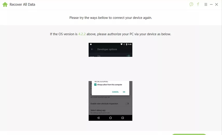 注意:默认情况下,适用于Android的UltData将自动访问手机的最高权限。如果失败,请先将您的Android设备植根。