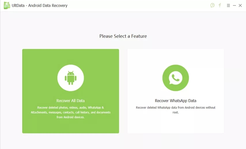 启动适用于Android的UltData,您将获得如下界面。选择功能“恢复所有数据”。