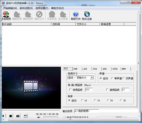 支持把flv/swf视频格式转换成AVI,DVD,SVCD,VCD等视频格式。